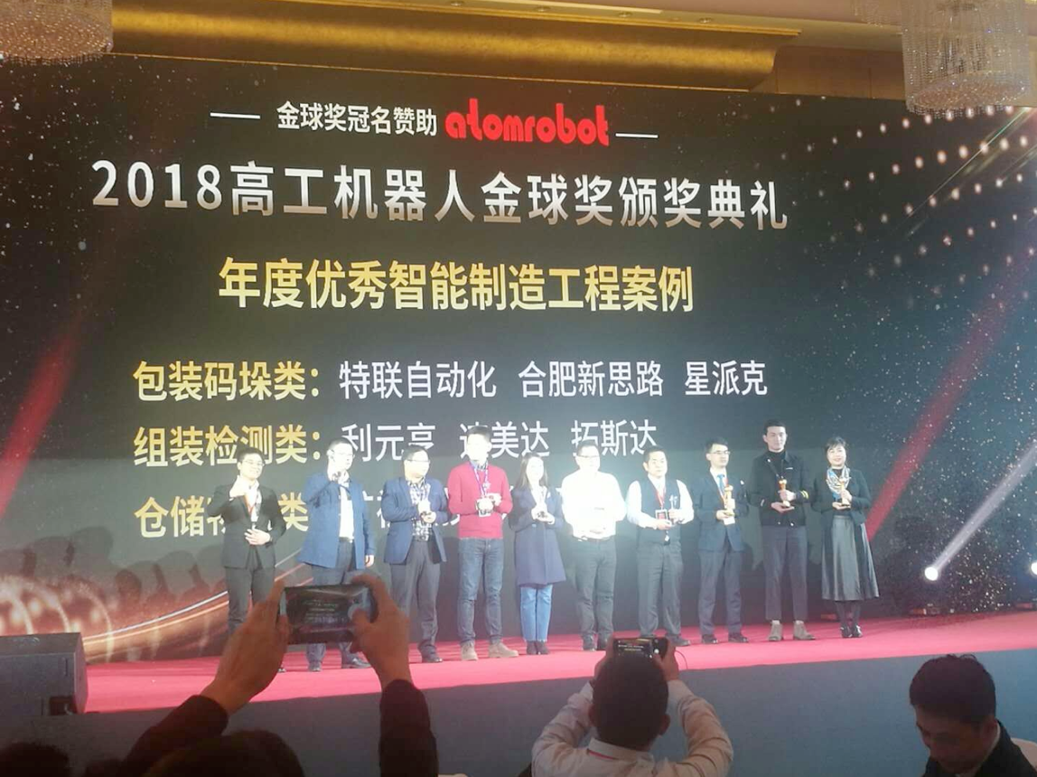 蕪湖哈特斬獲高工機器人2018年度最佳智能制造工程案例-倉儲物流類水晶球獎