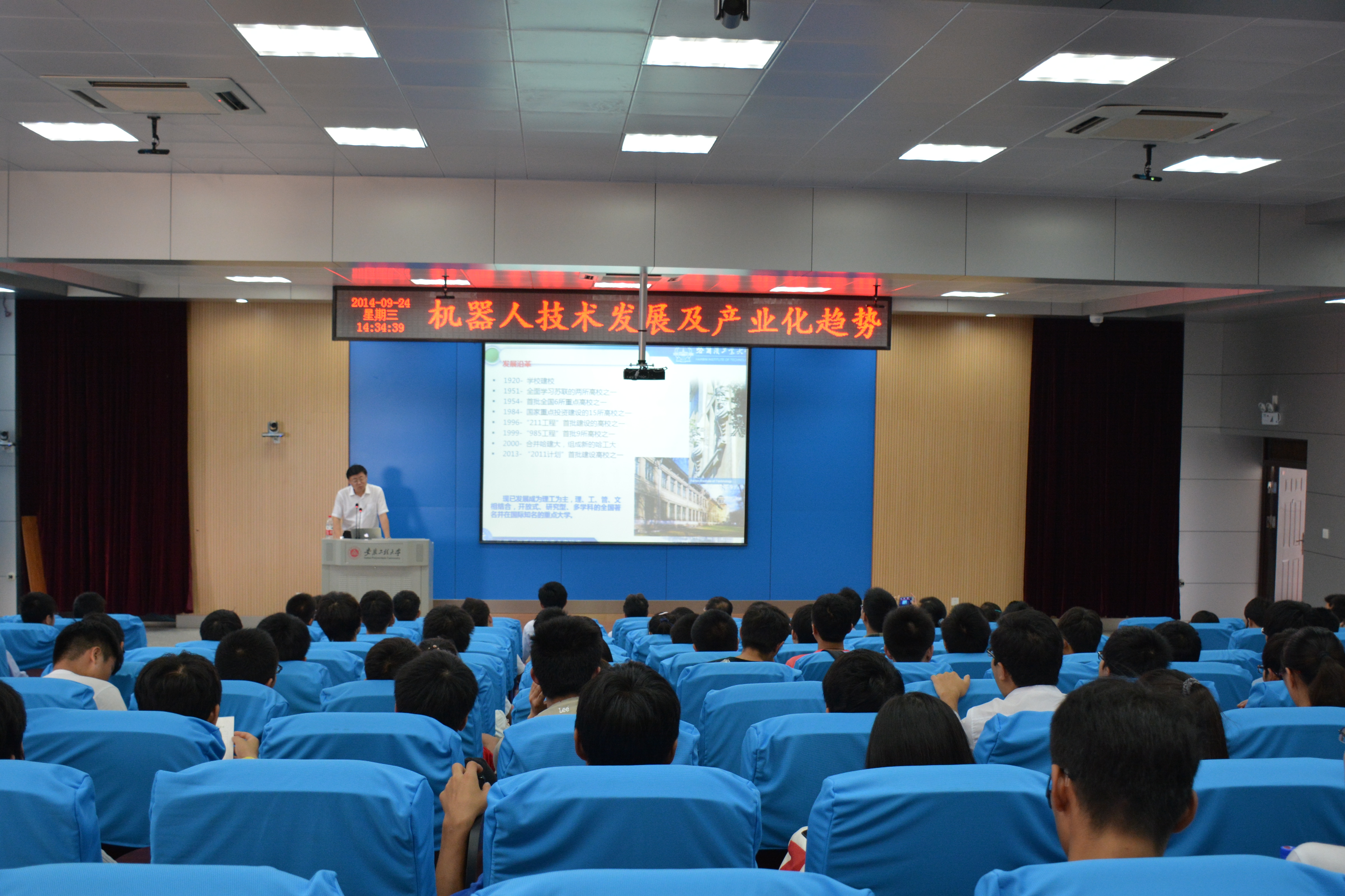 另悉,9月24日,李瑞峰副院長在安徽工程大學(xué)為在校相關(guān)學(xué)科的教師和學(xué)生奉上了一場關(guān)于“機(jī)器人技術(shù)發(fā)展及產(chǎn)業(yè)化趨勢”的講座,參加講座的師生約200人。