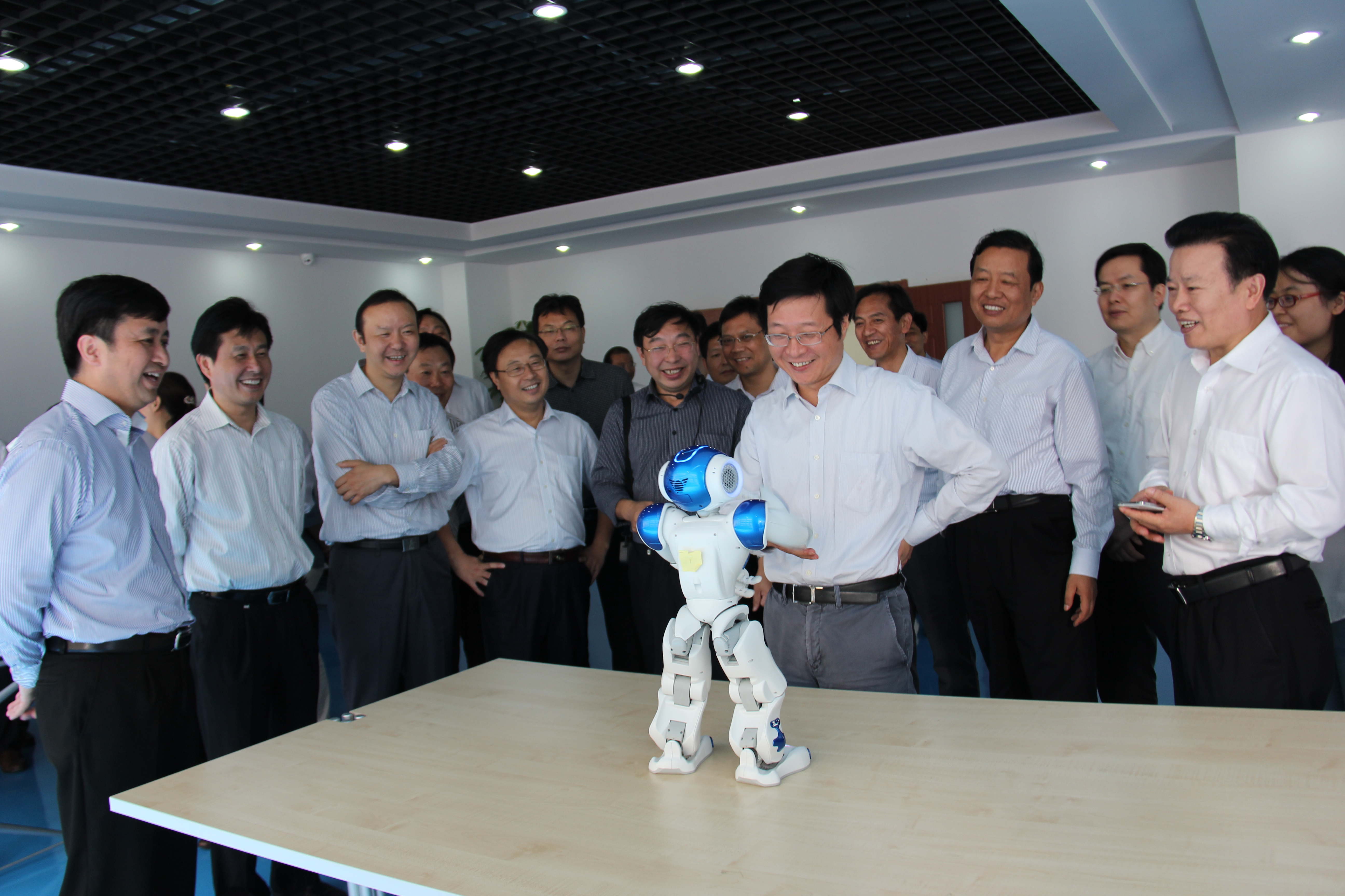 10月12日,市委副書記、市長潘朝暉等參加蕪湖市人民政府第三次全體會議暨戰(zhàn)略性新興產(chǎn)業(yè)發(fā)展推進會的60余名代表蒞臨我院調(diào)研機器人研發(fā)工作開展情況。