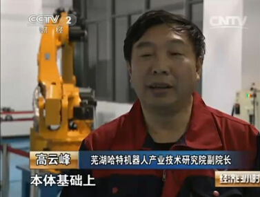 近日,我院副院長(zhǎng)高云峰接受中央電視臺(tái)財(cái)經(jīng)頻道《經(jīng)濟(jì)半小時(shí)》欄目記者的專訪。2014年11月8日播出的《經(jīng)濟(jì)半小時(shí)》節(jié)目,詳細(xì)介紹了中國(guó)工業(yè)機(jī)器人企業(yè)的發(fā)展歷程,并對(duì)未來工業(yè)機(jī)器人的發(fā)展進(jìn)行了展望,重點(diǎn)介紹了安徽埃夫特智能裝備有限公司的發(fā)展歷程以及我院與埃夫特公司的戰(zhàn)略合作關(guān)系。