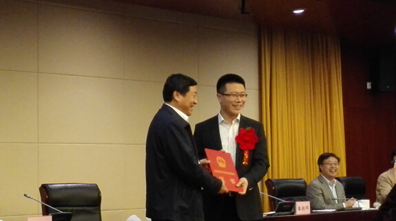 蕪湖市人民政府授予哈爾濱工業(yè)大學2014年度科技創(chuàng)新合作獎,蕪湖市委書記、市人大常委會主任高登榜為哈爾濱工業(yè)大學頒發(fā)了獎勵證書,趙秩杰代表哈爾濱工業(yè)大學上臺領獎。