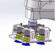 機器人生產(chǎn)線實現(xiàn)高速的途徑主要有:高速度機器人、與機器人匹配的取放機械手及能夠進(jìn)行高速處理的視覺與控制單元等。我院在引進(jìn)國際先進(jìn)的SCARA機器人本體基礎(chǔ)上,以液袋等軟包裝物為研究對象,開發(fā)出快速取放機械手。