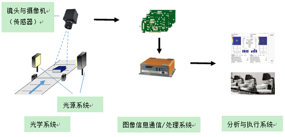 機(jī)器視覺系統(tǒng)包括:光學(xué)系統(tǒng)、圖像處理系統(tǒng)與分析/執(zhí)行系統(tǒng)三部分。