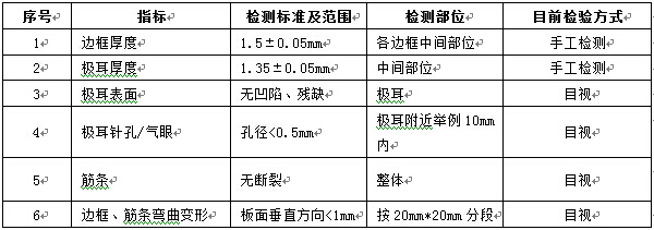 表1 某規(guī)格板柵工藝指標(biāo)及檢測方式
