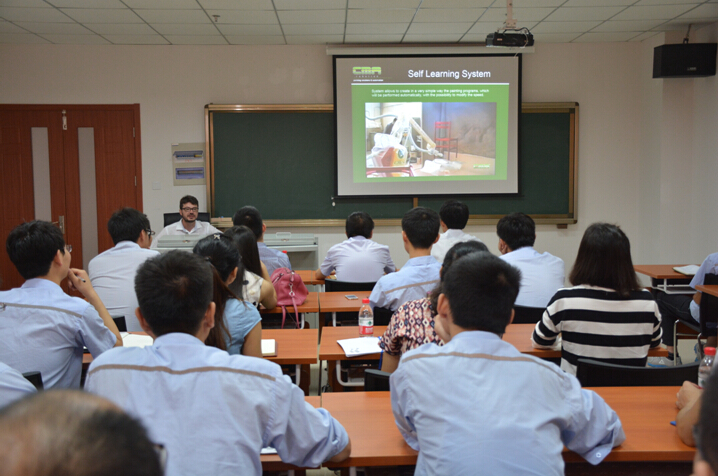7月20日,由哈工大蕪湖機(jī)器人產(chǎn)業(yè)技術(shù)研究院訪問教授、意大利CMA機(jī)器人公司研發(fā)部經(jīng)理Daniele Pillan博士主講的機(jī)器人技術(shù)系列講座之“Structure and functions of painting robots”在我院培訓(xùn)教室舉行。來自哈工大蕪湖機(jī)器人產(chǎn)業(yè)技術(shù)研究院、安徽埃夫特智能裝備有限公司和蕪湖固高自動(dòng)化技術(shù)有限公司部分研發(fā)技術(shù)人員約四十多人聽取了本次講座。