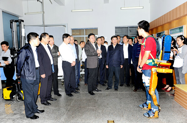 在機器人技術(shù)與系統(tǒng)國家重點實驗室和中德空間機器人技術(shù)聯(lián)合實驗室,看完師生們研發(fā)的高鐵巡檢機器人、醫(yī)療機器人、爬壁機器人、智能服務(wù)型機器人的現(xiàn)場演示,苗圩表示,近幾年國產(chǎn)機器人發(fā)展有很大進步。過去約一半左右的機器人是用在汽車行業(yè),現(xiàn)在已經(jīng)突破了這個界限,在電子信息行業(yè)等其他工業(yè)行業(yè)里開始得到普及和應(yīng)用。這就給機器人的發(fā)展應(yīng)用提供了巨大的機遇。哈工大要繼續(xù)堅持創(chuàng)新驅(qū)動發(fā)展戰(zhàn)略,一手抓好產(chǎn)品技術(shù)突破和重要配套的組織,一手抓好應(yīng)用,為兩化融合和“中國制造2025”的實施不斷貢獻新的力量,早日實現(xiàn)中國由制造大國向制造強國的轉(zhuǎn)變。