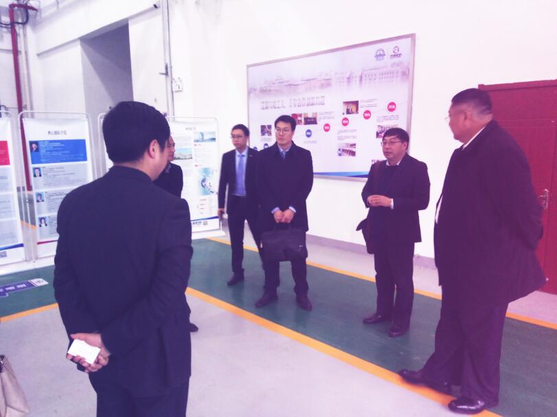 2017 年2 月24 日下午,蕪湖市人民政府副秘書長張東陪同北京匯澤博遠(yuǎn)機(jī)器人投資有限公司總經(jīng)理杜軍義一行蒞臨我司智能裝備研發(fā)中心參觀考察,我司總經(jīng)理高云峰接待陪同。