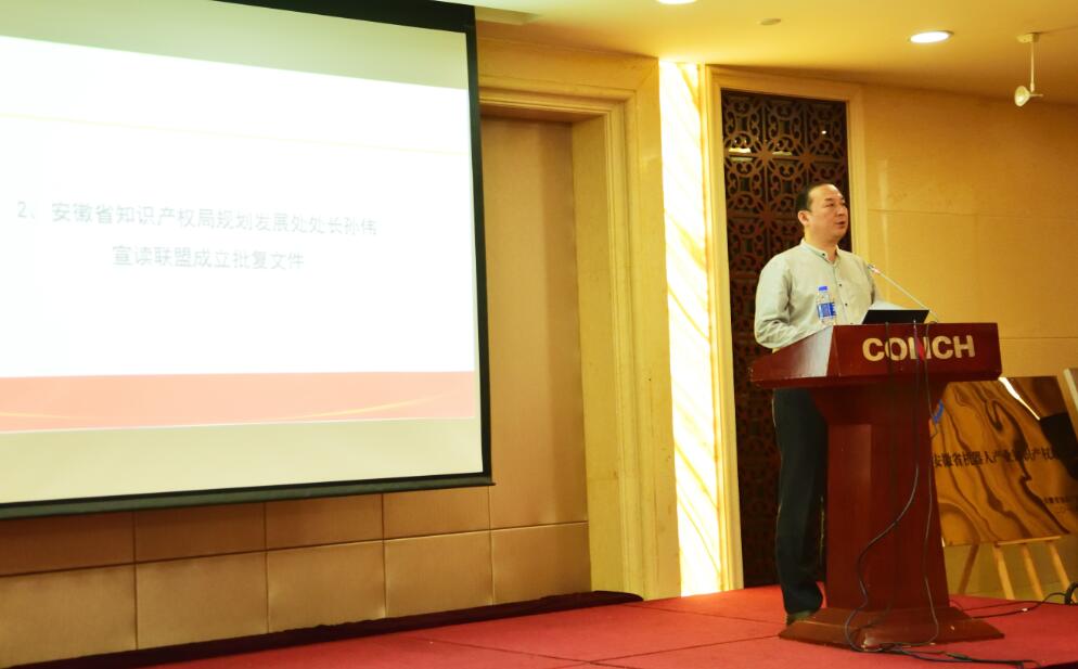安徽省知識產(chǎn)權(quán)局規(guī)劃發(fā)展處處長孫偉宣讀聯(lián)盟成立批復(fù)文件